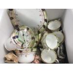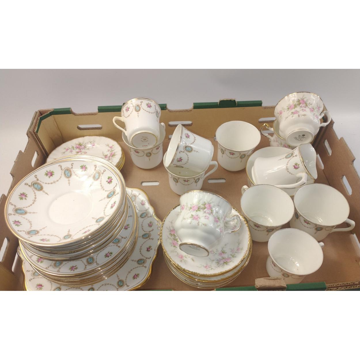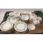 A bumper lot of quality china to include an ADDERLEY tea service comprising 6 each of cups, saucers and side plates, a CHODAU tea service in white with blue and gilt rim to include 4 cups, 6 saucers, 6 side plates, 1 cake plate, 1 milk jug and one sugar bowl, a small DORIC service to include 6 cups, 5 saucers and 5 side plates and one other tea service including 5 cups, 6 saucers, 5 side plates, 1 cake plate, 1 milk jug and 1 sugar bowl