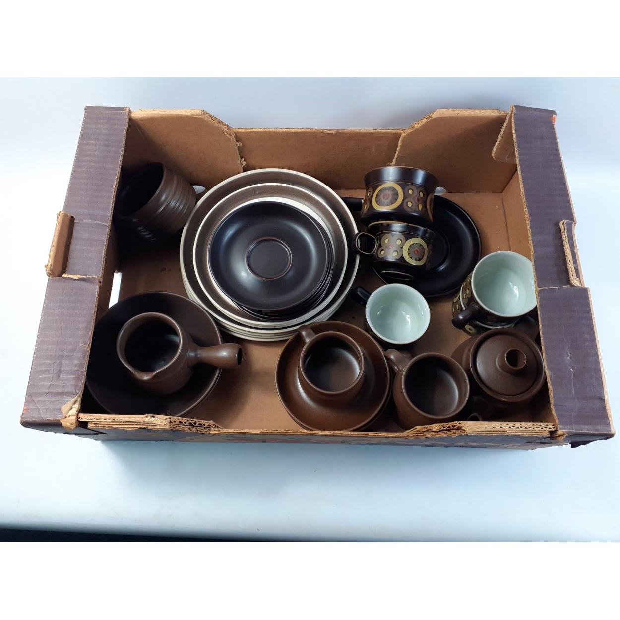 A collection of vintage 70s pottery to include DENBY Arabesque and other patterns