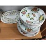 A SHERWOOD dinner service in the Ridgway pattern to include 6 plates (16cm), 6 plates (17.5cm), 6 plates (20cm), 1 plate (22.5cm), 6 plates (25cm), 6 saucers (14cm), 6 bowls (15cm), 6 bowls (23cm), 5 cups, 3 ashets (21cm, 30cm and 36cm), 1 serving dish (21cm), 2 lidded serving dishes (23cm), 1 sugar bowl, 1 small milk jug, 1 sauceboat,