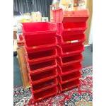 A useful quantity of 15 handy red workshop storage bins. Used but in good order.