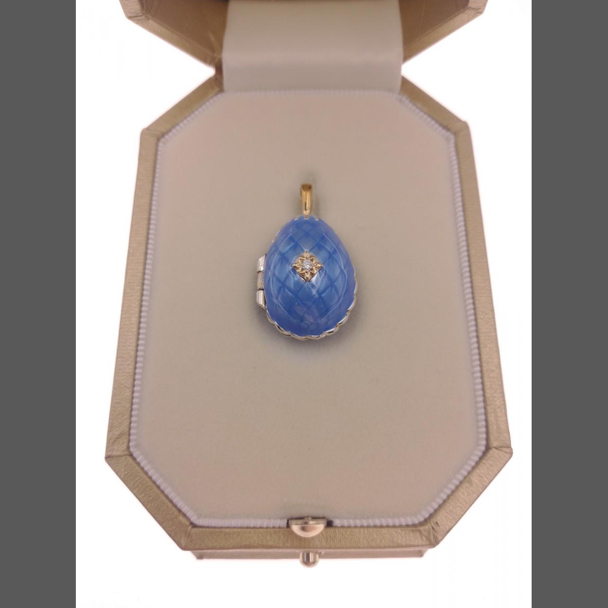 FABERGE ! St Petersburg Collection by THEO FABERGE. PASSION PENDANT TF959 World Limited Edition 7/500 pieces purchased at the world launch of Queen Mary 2 in 2019. A gorgeous blue enamelled egg with a small rotating globe of the earth inside with the continents picked out in gold. Includes original receipt from Cunard for $1500.