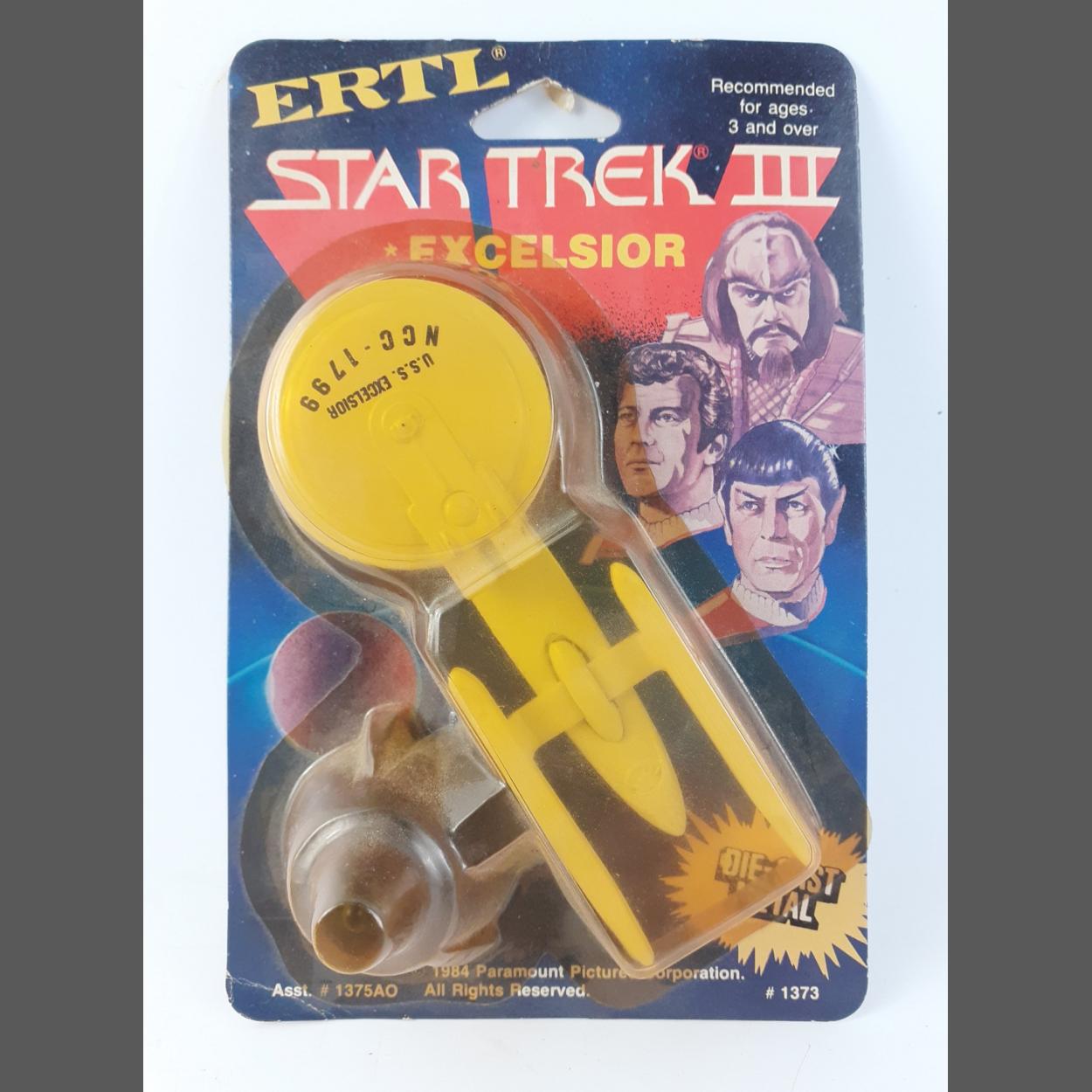 ERTL Star Trek III Excelsior in blister pack from 1984. Plastic yellowed.