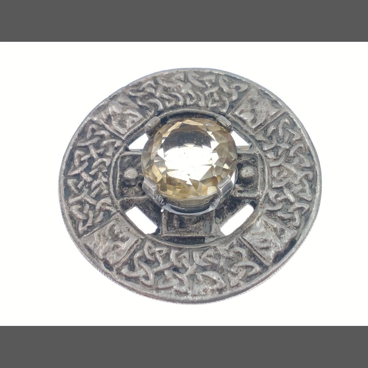 A very nice Solid Silver Scottish plaid / kilt brooch with very nice light yellow Cairngorm stone. Makers Mark WBs and hallmarked Edinburgh 1957. Total gross weight 25.7g approx. Approx 4cm across.