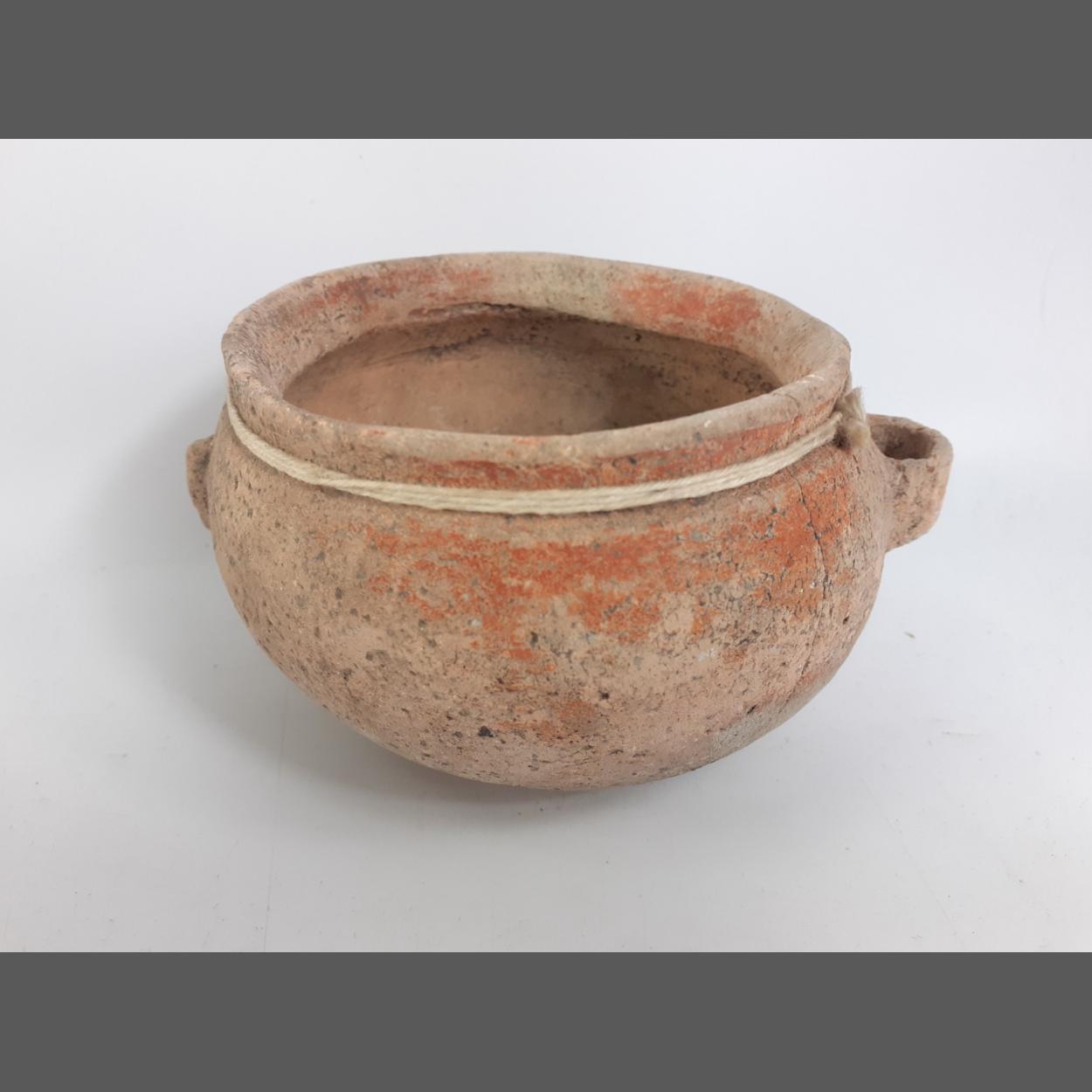 MAYA clay pot with label saying ''British Honduras 1948''. Has cracks and one broken handle but displays beautifully.