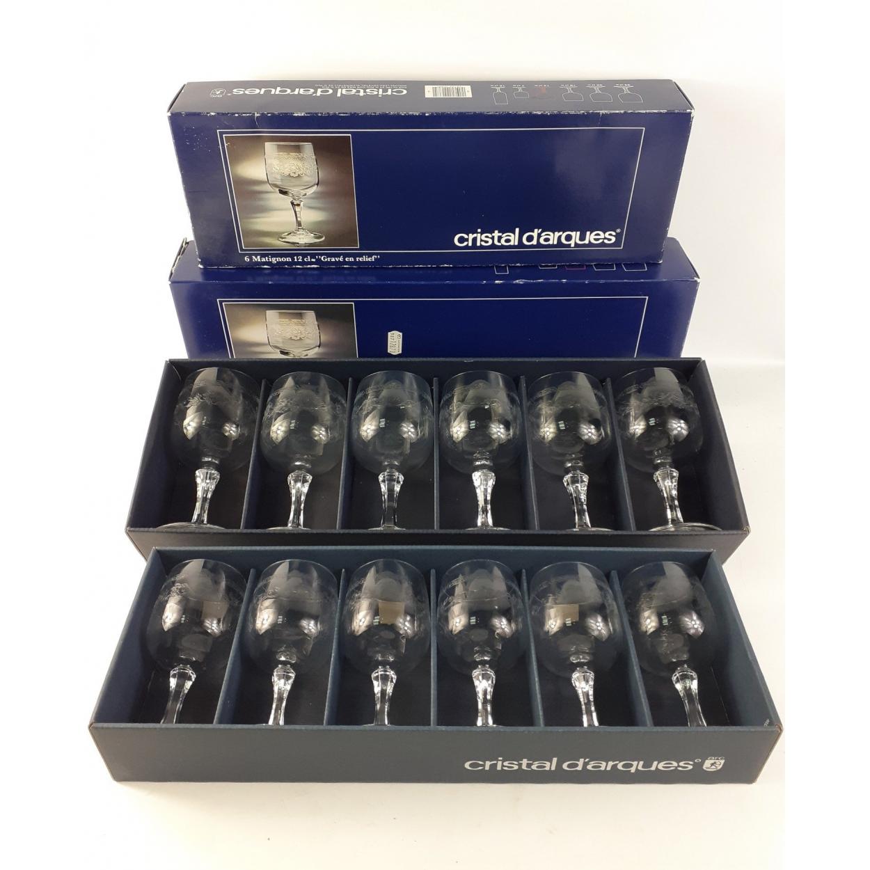 Two boxed sets of 6 MATIGNON wine glasses from Cristal D'Arques in sizes 12cl and 18cl. No damage