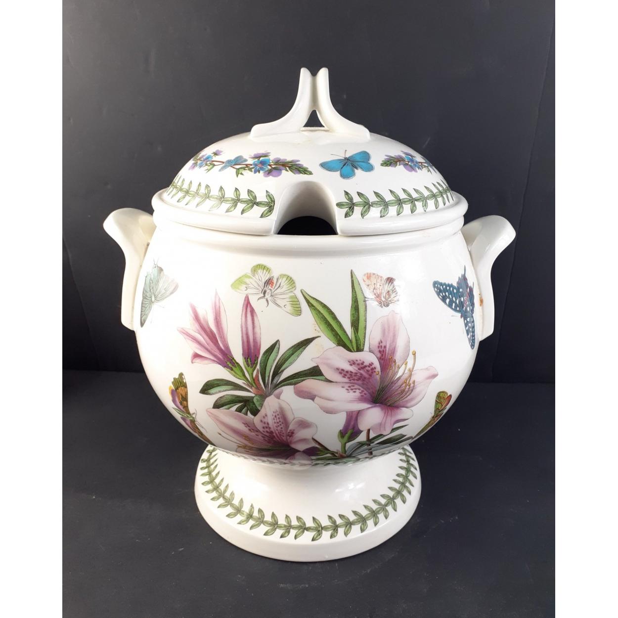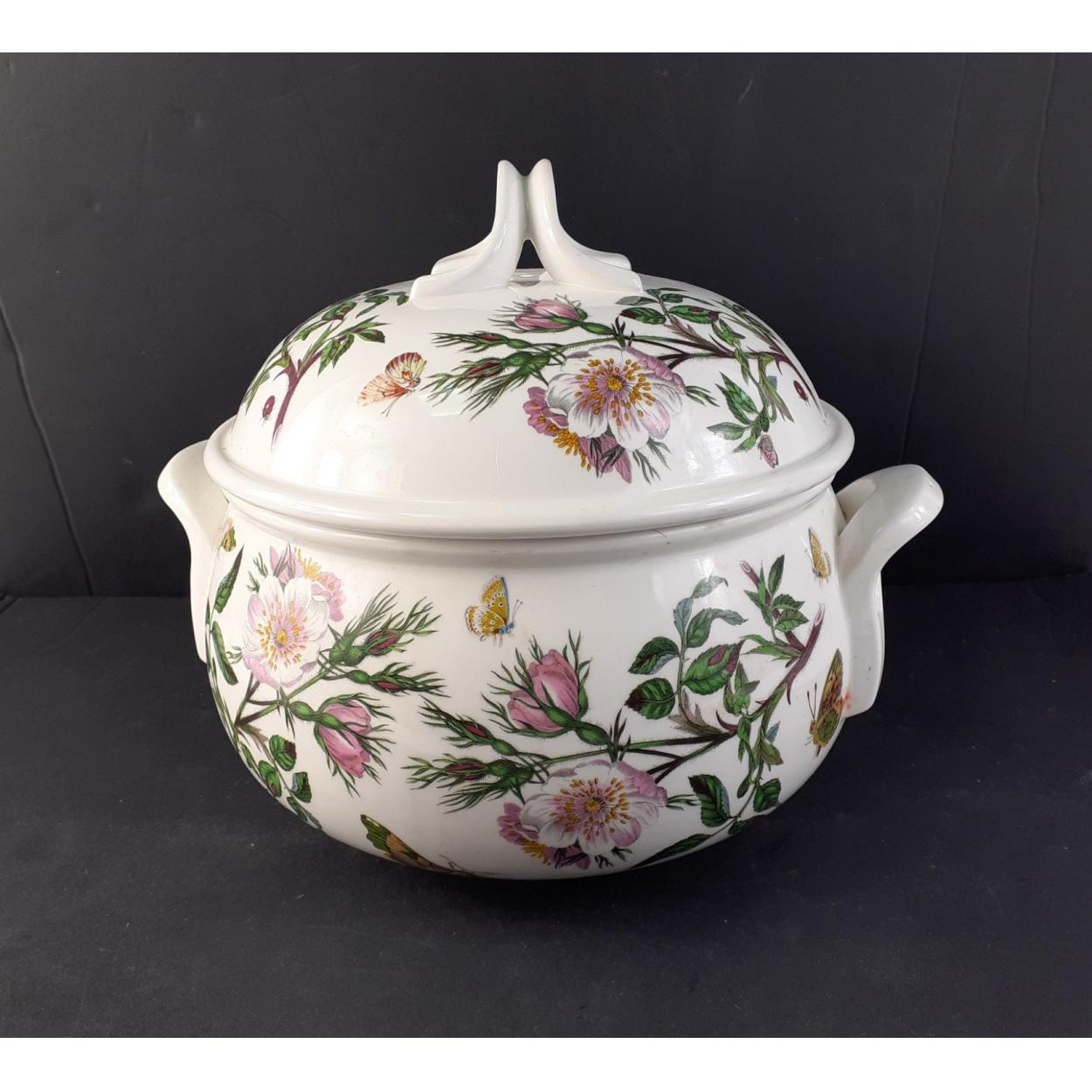 PORTMEIRION Ceramics - A large double handled tureen 23cm tall. No visible damage. Attractive unnamed floral pattern with pink flower and butterflies.