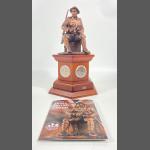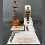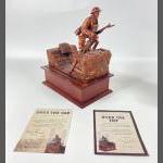 An OVER THE TOP Danbury Mint bronzed sculpture on a wooden plinth includes a penny from 1918, comes with certificate of authenticity, stands 27cm tall, plinth is 22cm long, (Slight damage to bayonet)
