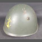 WWII Italian Navy hard hat steel helmet with lining. Numbered P4 to rear internal lip. Used good condition with some expected wear.