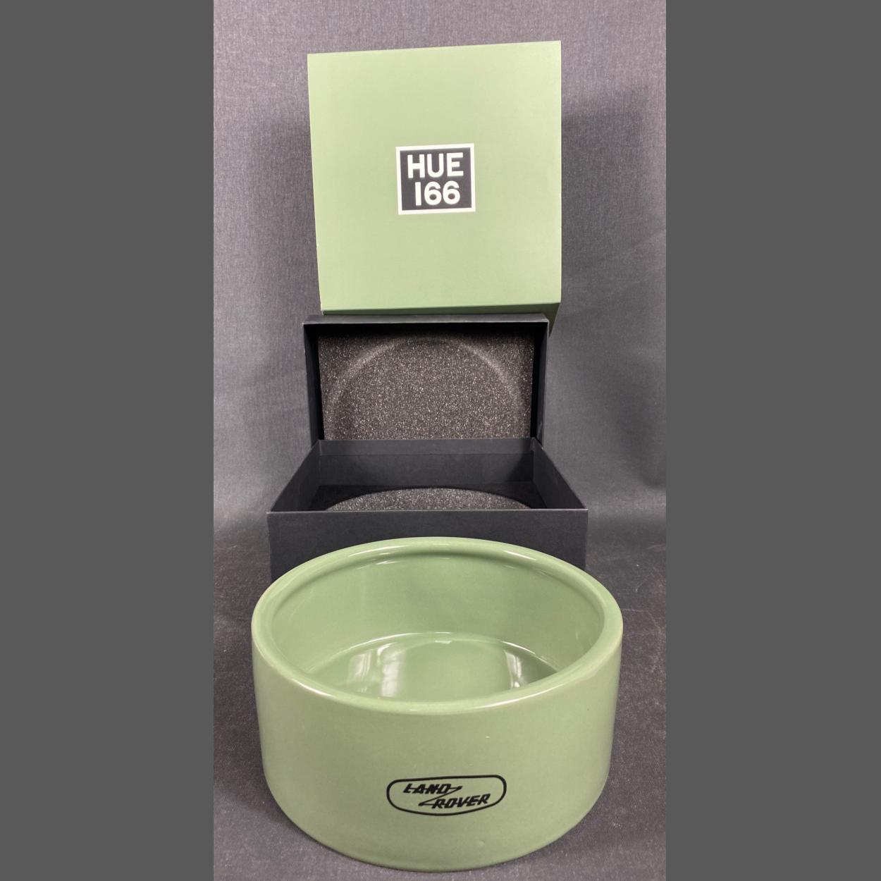 LAND ROVER ENTHUSIASTS OUT THERE! Boxed as new LAND ROVER HUE 166 green ceramic dog bowl 19x8cm