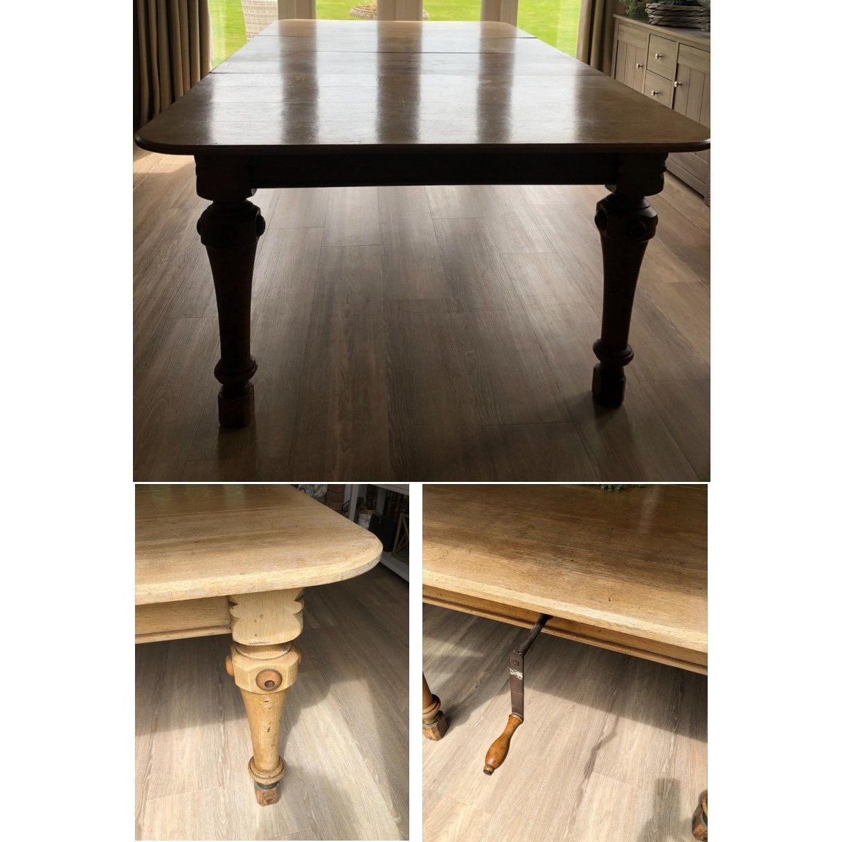 IMPRESSIVE! Large Victorian LIGHT OAK extending dining table 8ft (2.45m including leaf at 48.5cm) x 4ft 4" (1.33m) approx with two extending leaves - 4ft in length once leaves removed approx - 'many a gid nights entertaining roon this table I bet?