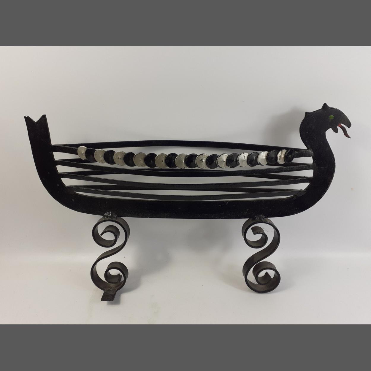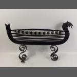 Attractive metal garden plant holder in the shape of a Viking longboat. Measures 57cm across approx and in good condition.