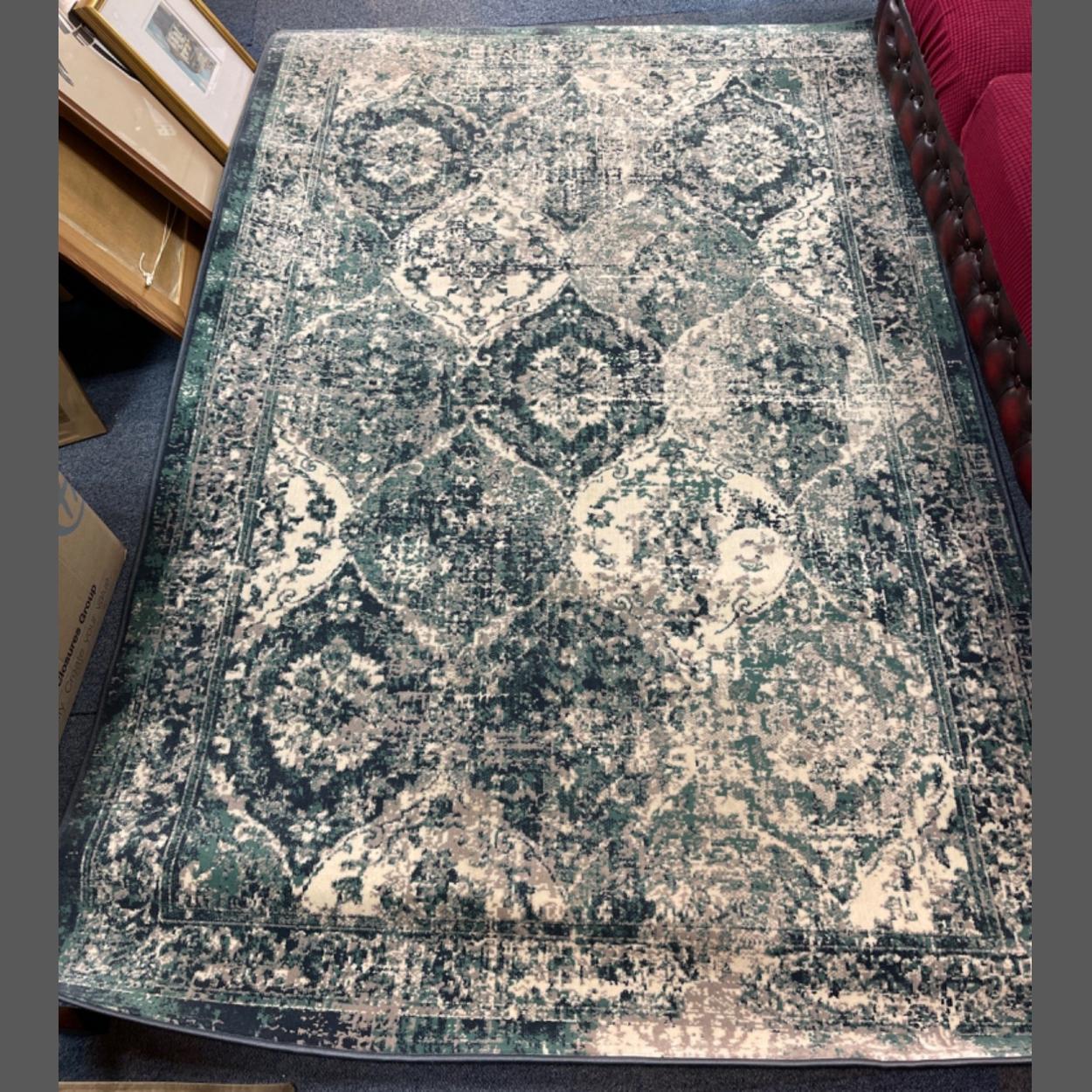A modern robust rug with a greenish/cream design - 6.5ft x 4.5ft approx