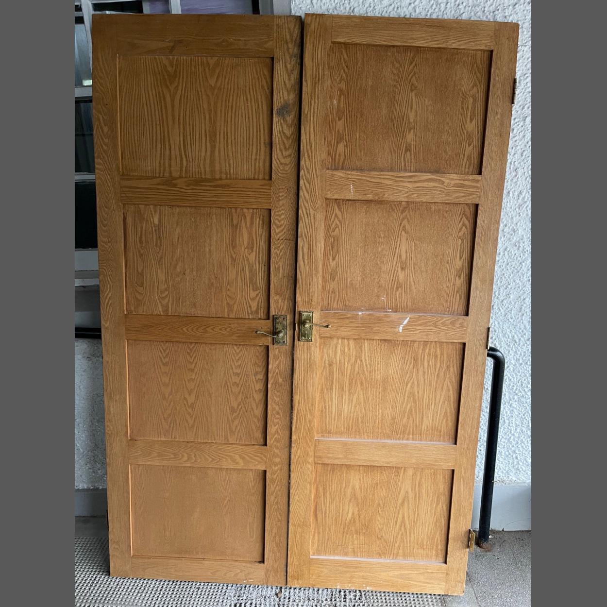 A set of good quality heavy modern 4 panel double doors with brass handles and hinges 78"x 26.5" each door - can be used as a double door access or used as single doors etc