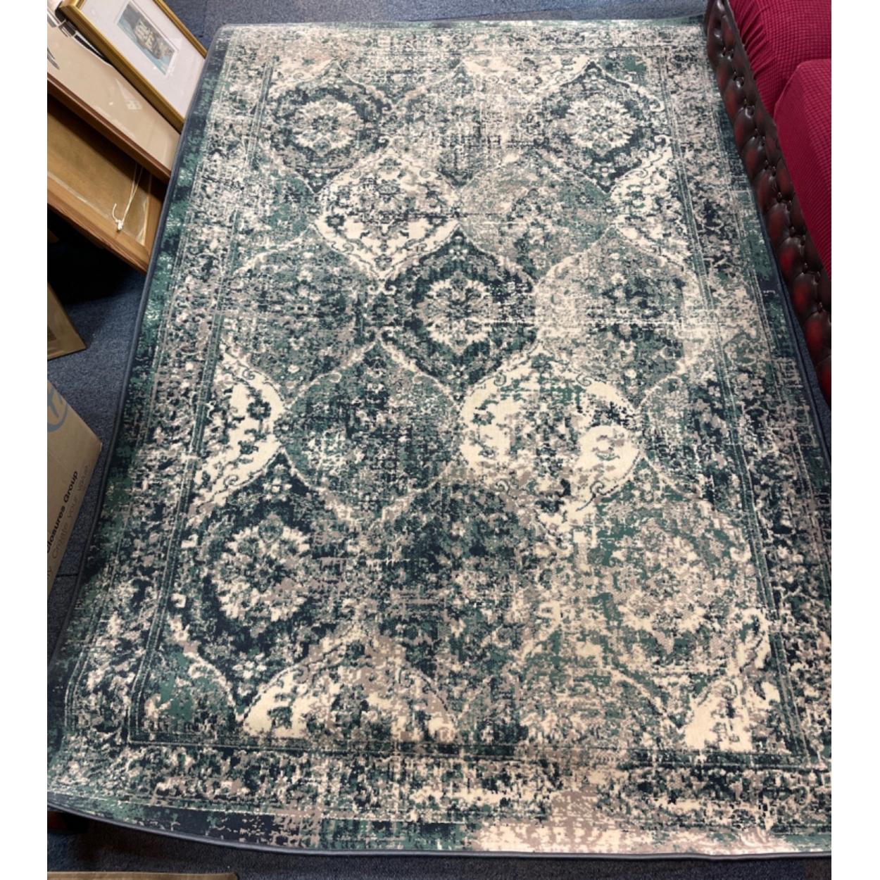 A modern robust rug with a greenish/cream design - 6.5ft x 4.5ft approx