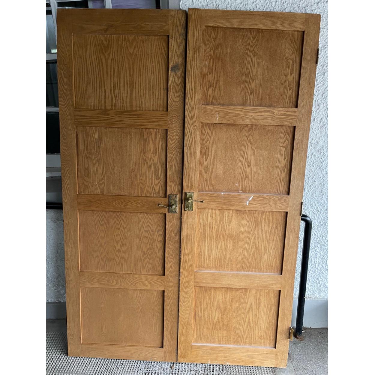 A set of good quality heavy modern 4 panel double doors with brass handles and hinges 78"x 26.5" each door - can be used as a double door access or used as single doors etc