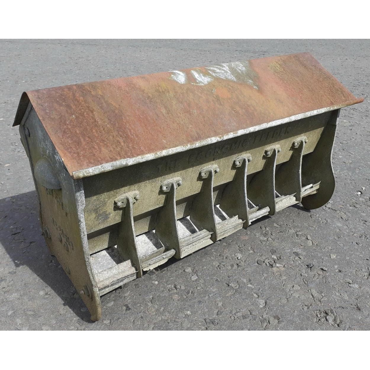 VINTAGE GARDEN FEATURE - A super vintage rustic chicken feeder with great patina, patent number 21619 measurements H35xW62xD30cm approx