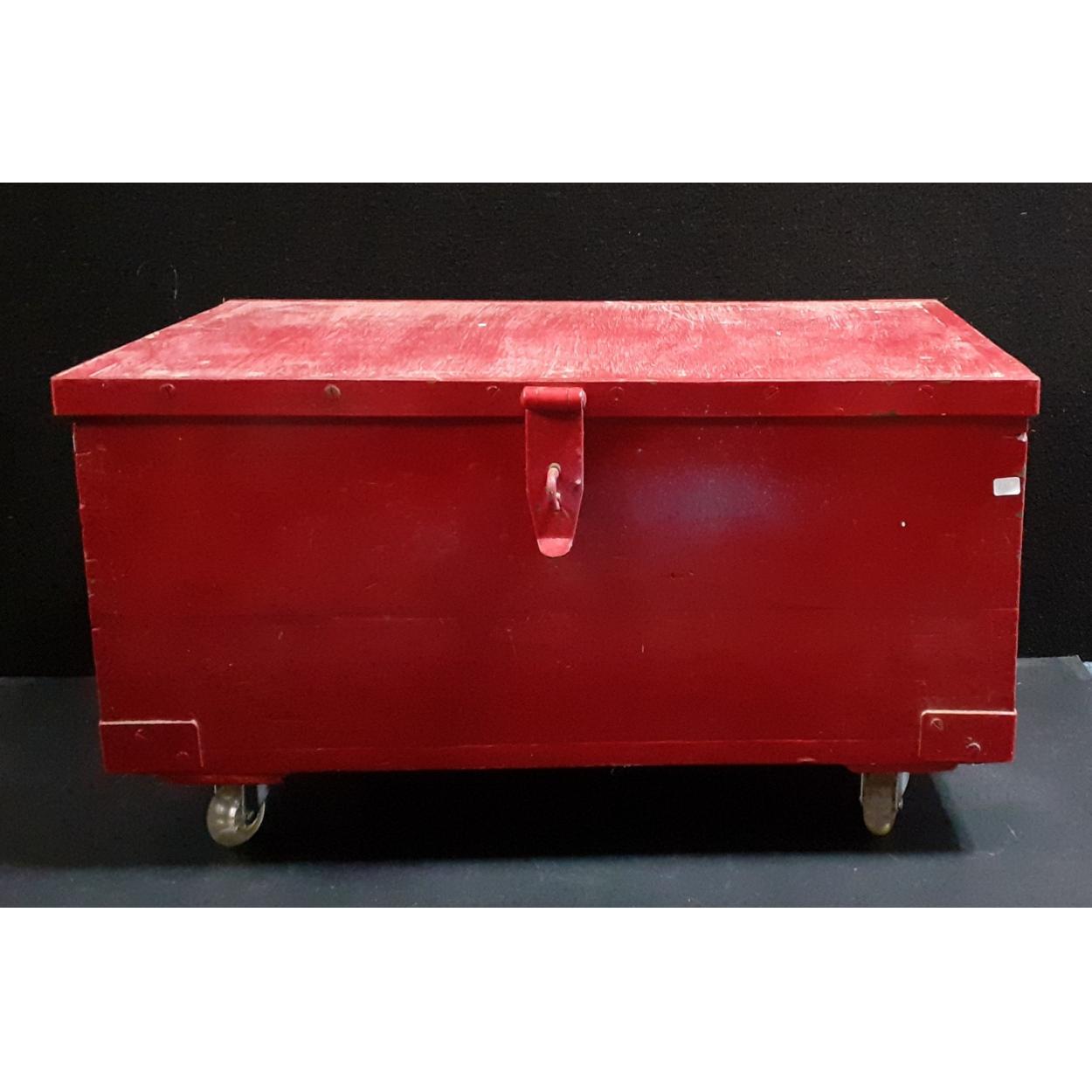 STORAGE SOLUTION - A useful wooden wheeled storage box H37xW66xD40cm approx