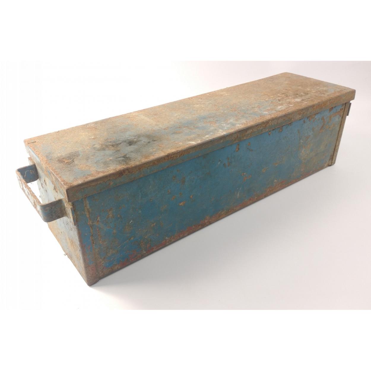 A HANDY 8vintage metal tool box with double handle and great patina W60xD16xH15cm approx