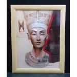 A large, glazed print of NEFERTITI, artist's signature indistinct, frame size 93x72cm approx