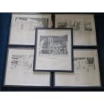 A super collection of 5 CHARLES RENNIE MACKINTOSH pen and ink prints from the Hunterian Art Gallery in Glasgow c1990, frame size 66x56cm approx. Condition quite disappointing.