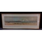 A wonderful shoreline water colour of a brooding coastal scene signed T CAMPBELL. Measures 89cm wide x 37cm high approx.