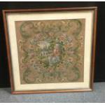 A framed tapestry of a pastoral scene, frame size 56x56cm approx