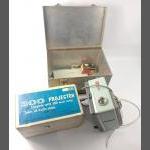 A useful aluminium storage box containing a vintage Boots 300 projector. H21 x W36 x D24cm approx