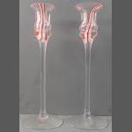 A pair of CAITHNESS Glass thin stem candle holders standing 22cm. Note one has slight chip to rim.