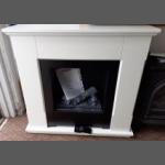 A brand new remote-control DIMPLEX Burnam BRN20 Opti-Myst Electric Fireplace Suite - as new condition - you simply top-up the fire with water for the misty-smoke to give the fabulous effect - cost new £870! - comes with booklet and remote control - dimensions of the white encased cabinet 85cm height x 90cm x 30cm approx