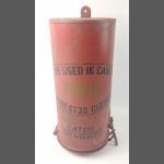 An interesting DECORATIVE fire storage tin once containing asbestos cloths, thankfully now empty 36cm tall