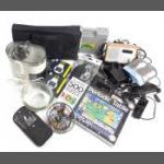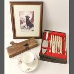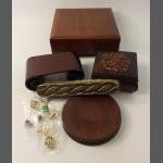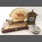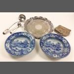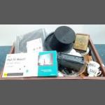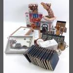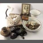 A mixed lot to include a small silver elephant hallmarked Birmingham 1906, 15g approx for holding matches, a silver plated notebook and pencil (7x5cm approx), a small leather coin pouch with 3 pre-1947 threepences plus one too worn to read, a collection of Boys Brigade badges, also Women's section British Legion, a button hook, a ring with South African Republic on inside and shilling 189 on the outer, 4 cloth swastika armbands plus 2 unfinished in felt, a beginner's stamp album with stamps from around the world and a small tiepin/earring box with contents of costume earrings.