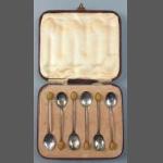 A set of six silver boxed coffee spoons with coffee bean finials, hallmarked Birmingham 1924, gross weight 30.5g approx. Made by TW&S