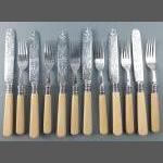 A set of six each of attractively designed dessert knives and forks, hallmarked for Sheffield 1939 on bolsters, gross weight 450g approx