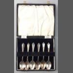A box of silver teaspoons, hallmarked Sheffield 1946, weight 74.6g approx. Maker Laurence Allen