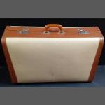 A large retro suitcase in excellent condition with lined interior, 71x46x25cm approx