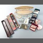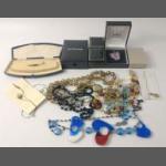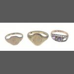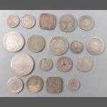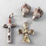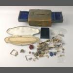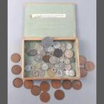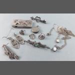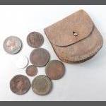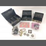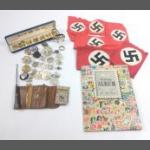 A mixed lot to include a small silver elephant hallmarked Birmingham 1906, 15g approx for holding matches, a silver plated notebook and pencil (7x5cm approx), a small leather coin pouch with 3 pre-1947 threepences plus one too worn to read, a collection of Boys Brigade badges, also Women's section British Legion, a button hook, a ring with South African Republic on inside and shilling 189 on the outer, 4 cloth swastika armbands plus 2 unfinished in felt, a beginner's stamp album with stamps from around the world and a small tiepin/earring box with contents of costume earrings.