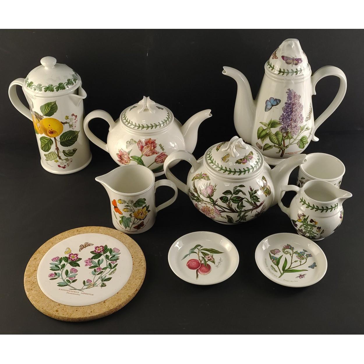 PORTMEIRION Tea and coffee service collection, comprising coffee pot, tea pots, hot water, milk and sugar with pot stand and two tea bag trays. A wonderful collection.