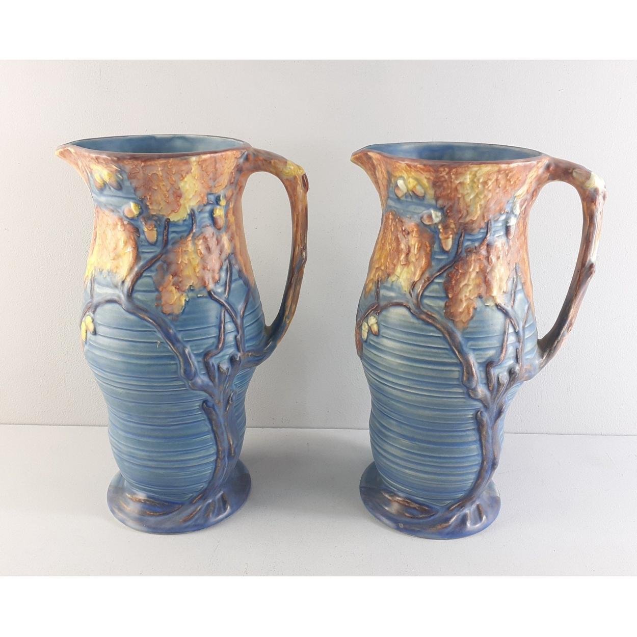 A pair of CARLTON WARE Blue Night Oak Tree Relief pottery jugs each standing 26cm high approx. No damage noted.