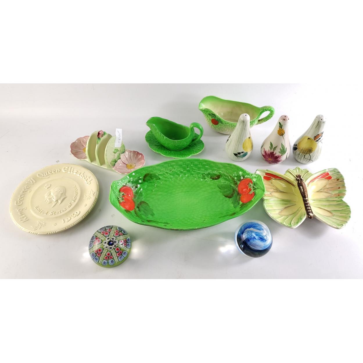 A nice decorative lot to include BESWICK Butterfly dish, CROWN DEVON, SELKIRK GLASS paperweight and others.