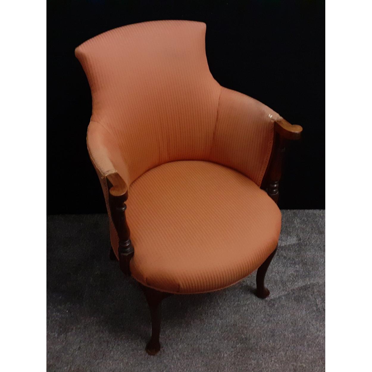 A really COMFORTABLE high-backed armchair in terracotta coloured fabric