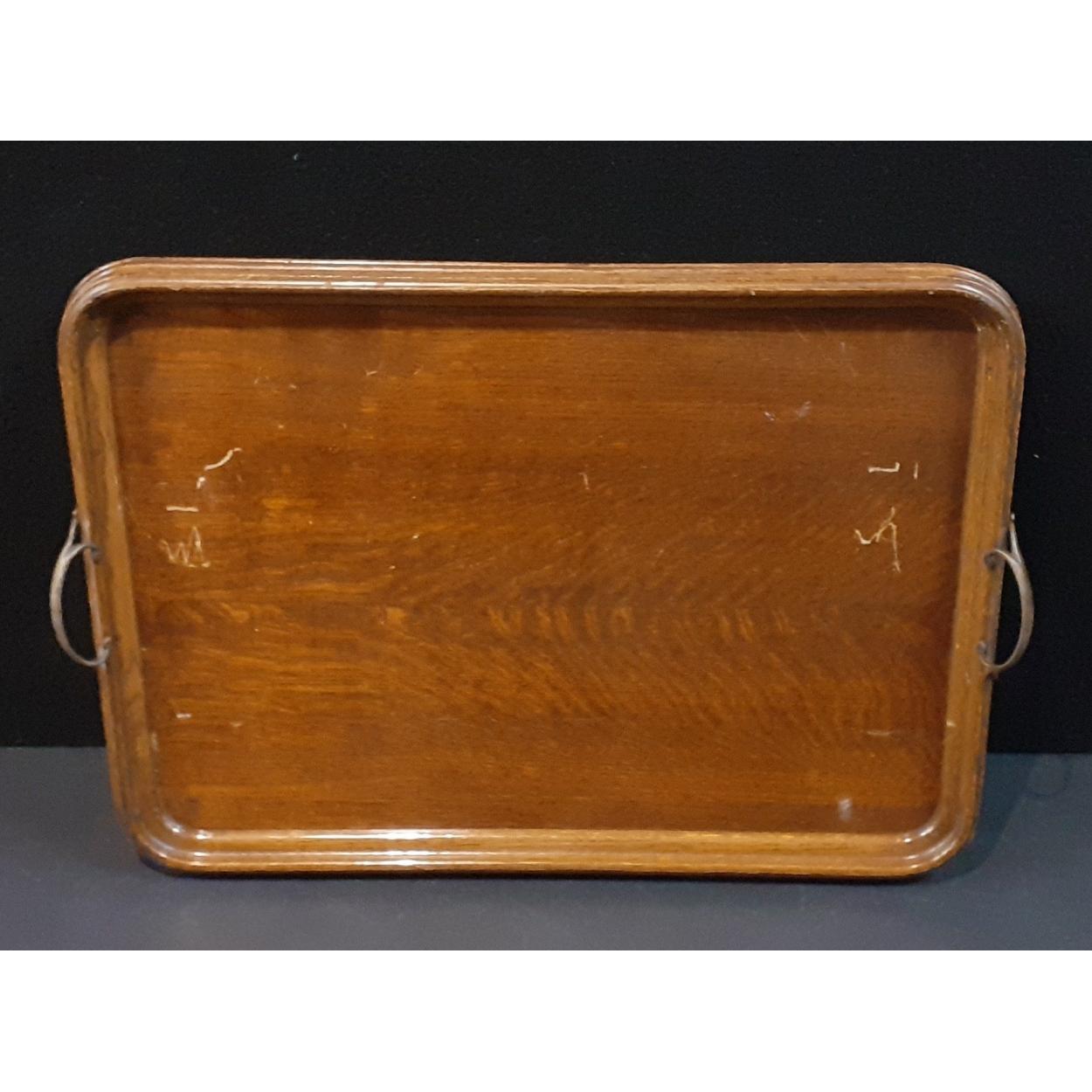 A lovely large antique oak tray with nicely patinated finish. Some scratches noted. 65cm x 48cm approx. A lovely solid piece.