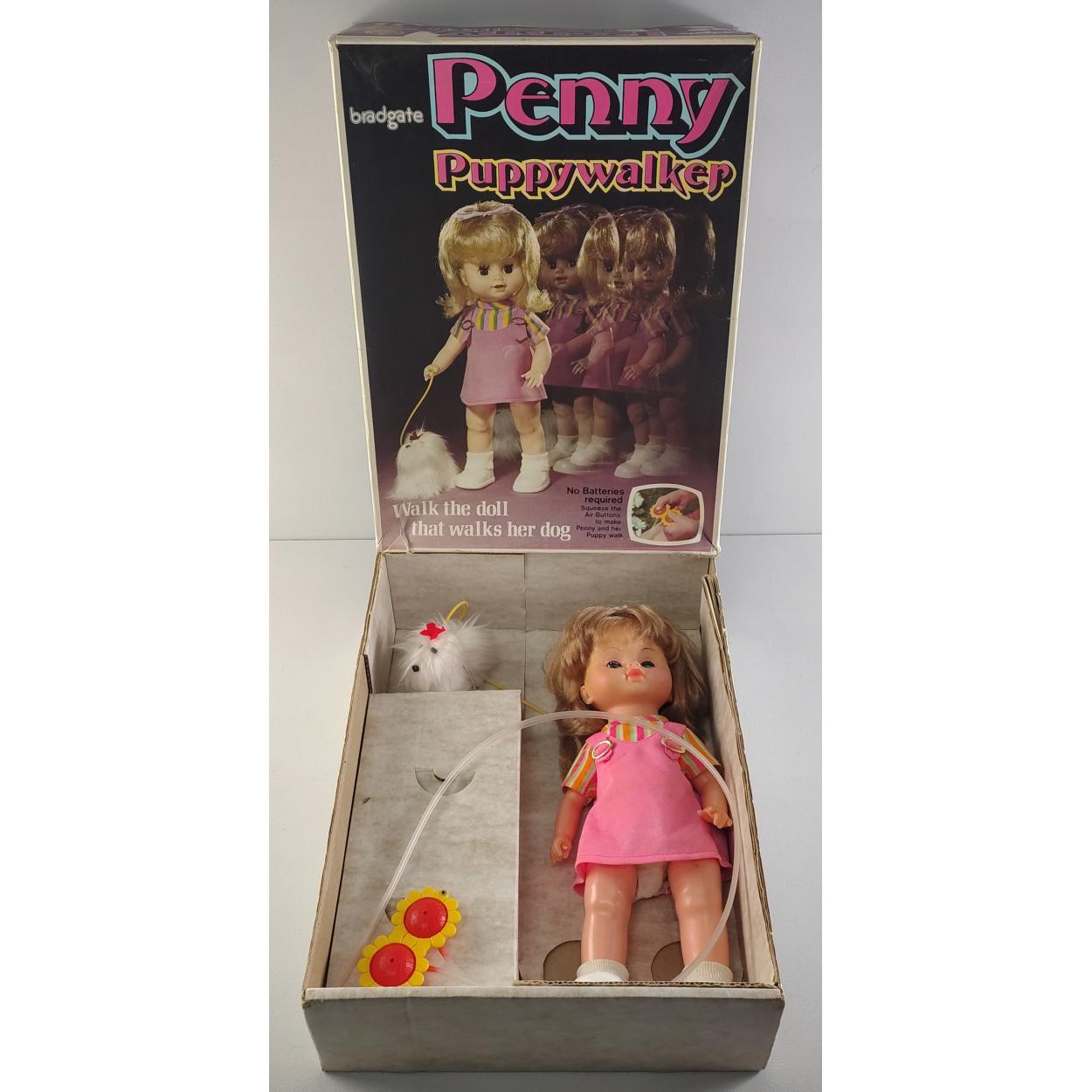 Boxed vintage Bradgate PENNY PUPPYWALKER doll and dog in box in good condition.