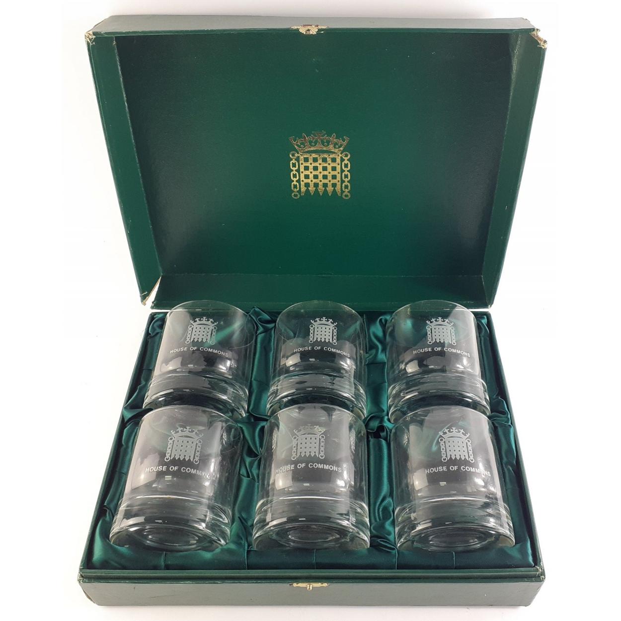 HOUSE OF COMMONS glass whisky tumbler box set of six in box.