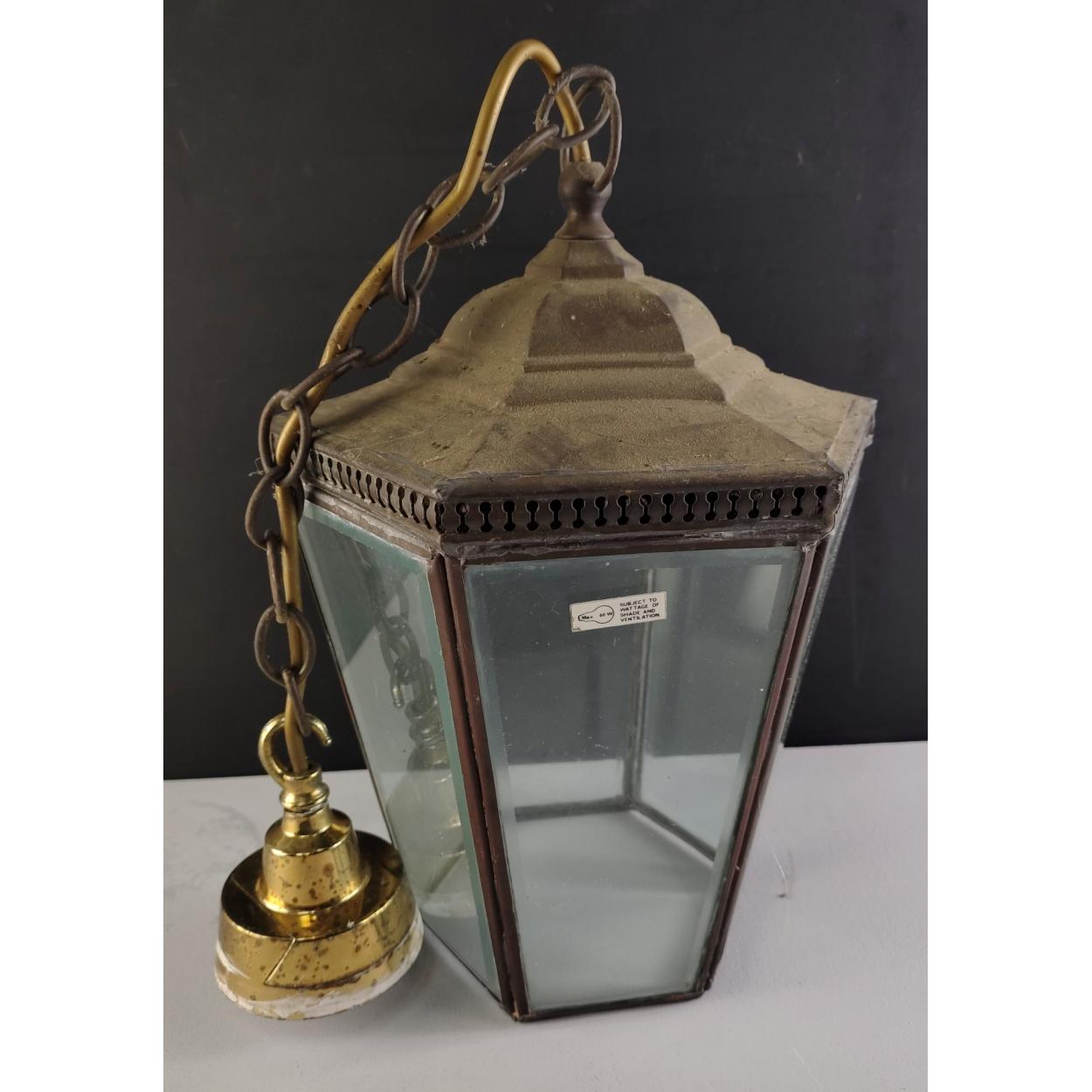 A modern pendant hanging lamp with patina stands 30cm approx, exc. chains.