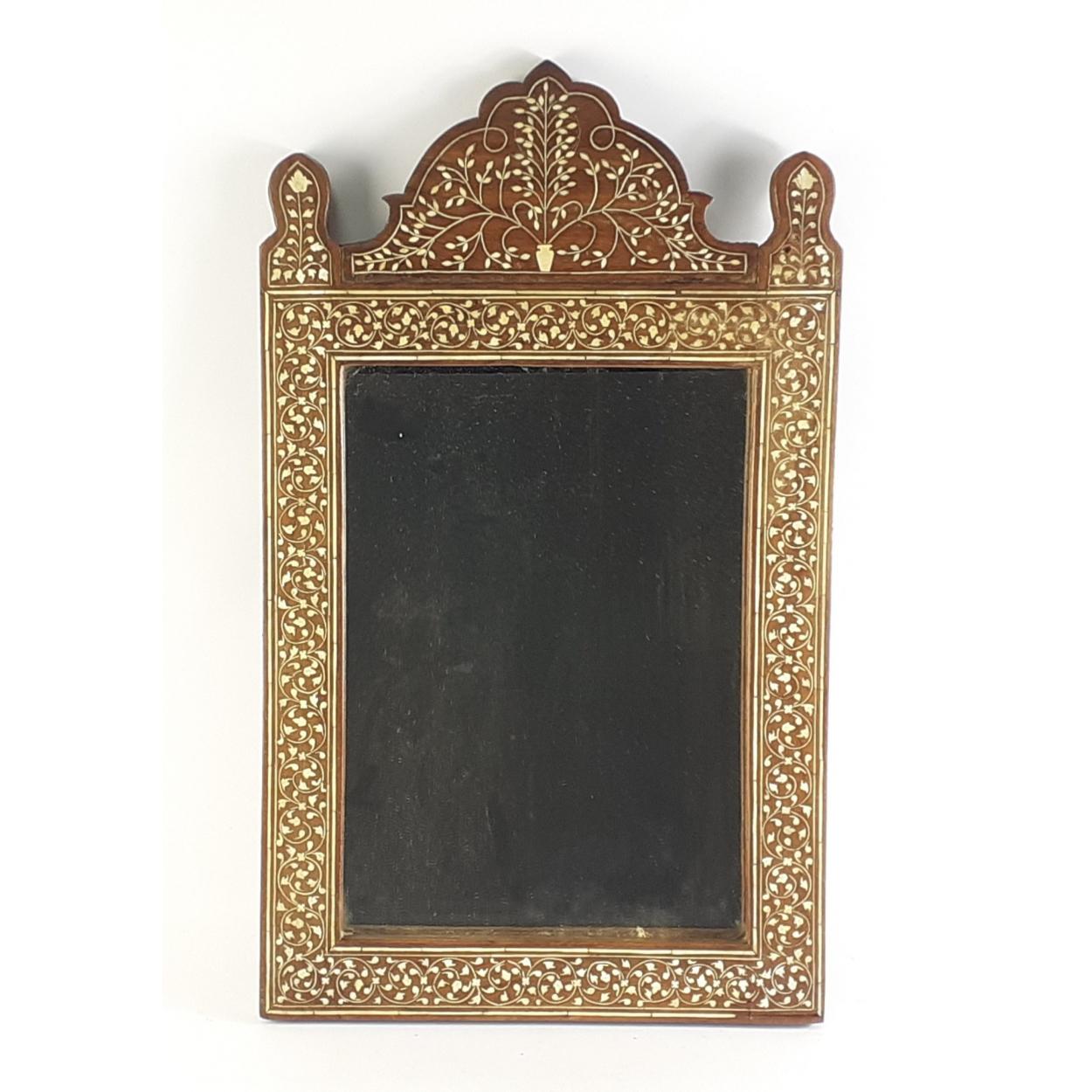 An attractive wooden mirror with detailed inlay of a floral design. Measures 56 x 34cm approx