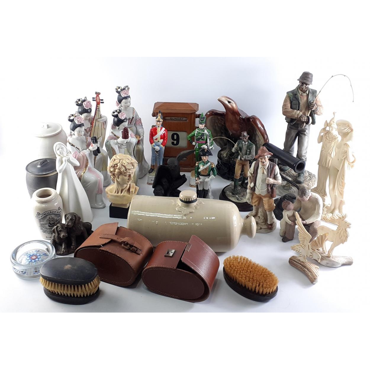 A substantial collection of decorative items to include LEONARDO COLLECTION fishermen, ROYAL DOULTON Images (HN3129), 4 musical geishas, WILLOW TREE man, ALFRETTO military figures etc.