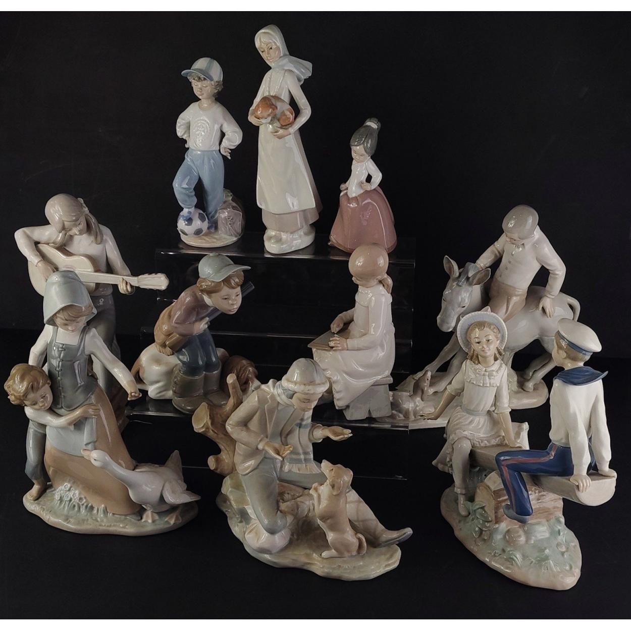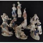 Ten lovely Spanish ceramic figures. NAO, LLADRO and Casades. The largest 27cm high approx. Includes Guitar Girl, See -Saw, Boy on Donkey etc. All in good collectable condition