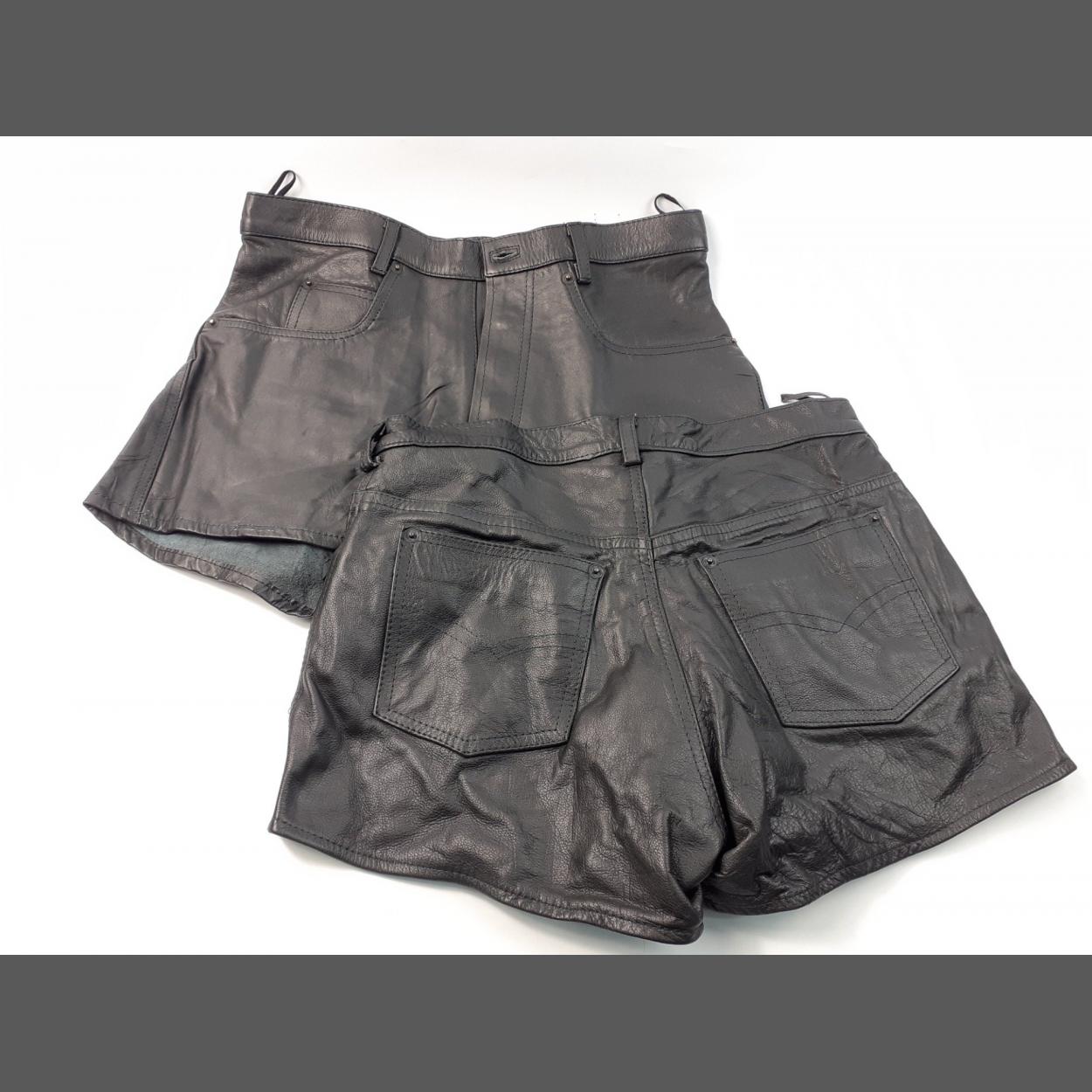 Two pairs of black leather shorts, size 34, with lining