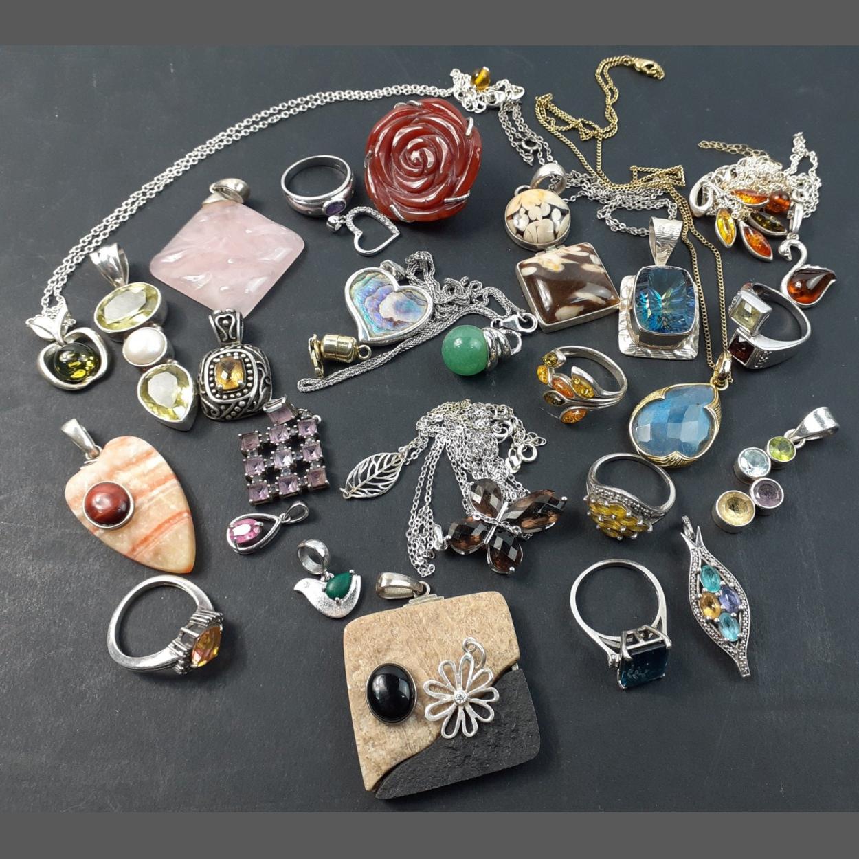A full bag of mainly SILVER jewellery stamped 925, with some white unmarked jewellery also - an amazing collection of silver jewellery to include rings, pendants etc