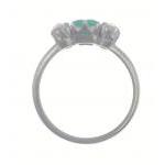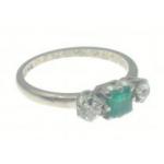 An 18ct stamped white gold diamond and emerald ring, a square-cut emerald flanked by two clear diamonds - emerald dimensions 0.4mm square approx and each diamond 3mm diameter approx - ring size O and gross weight 3.49g approx